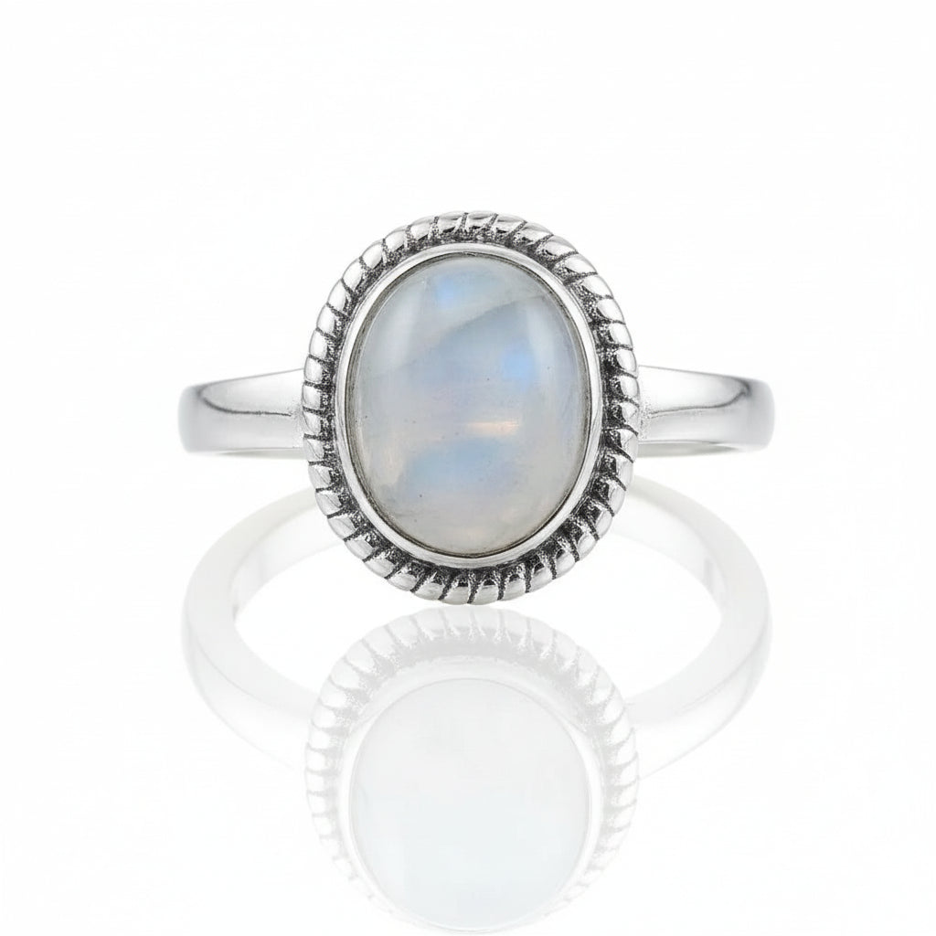 Avec un poids d’environ 3,5 g, la bague argent pierre de lune offre un bon équilibre entre finesse et présence. Elle peut se porter comme pièce centrale, ou compléter une composition de bijoux minimalistes pour un look plus moderne.
