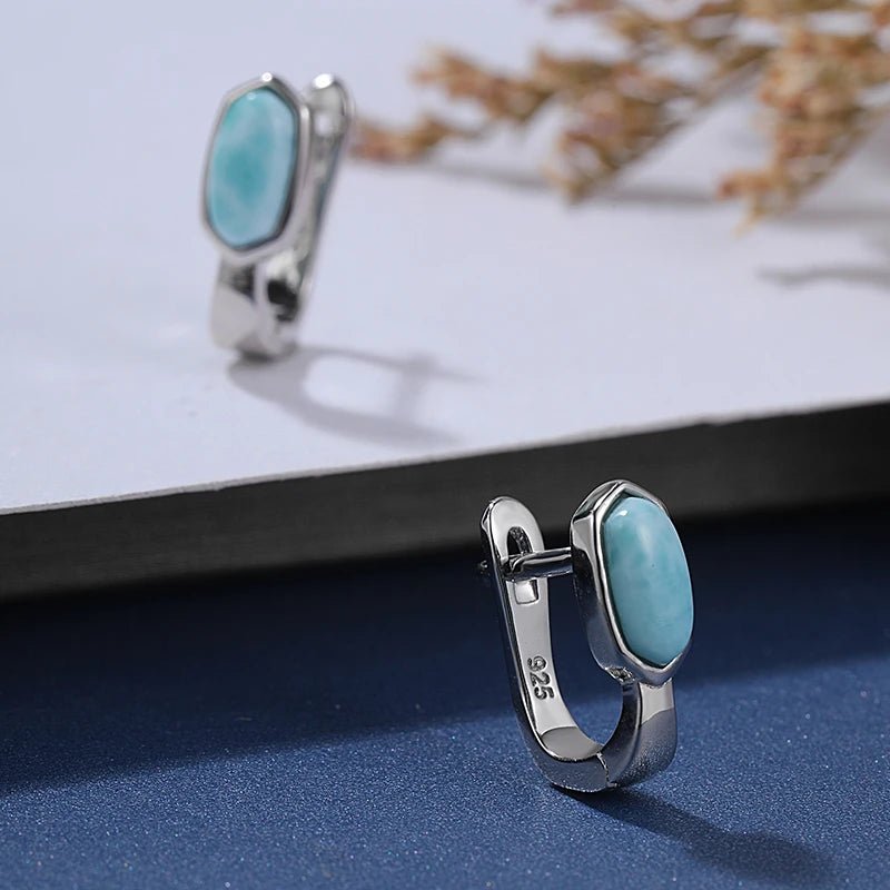 Les boucles d'oreille larimar offrent une touche lumineuse grâce à leur pierre bleue unique, rappelant la beauté des eaux des Caraïbes.