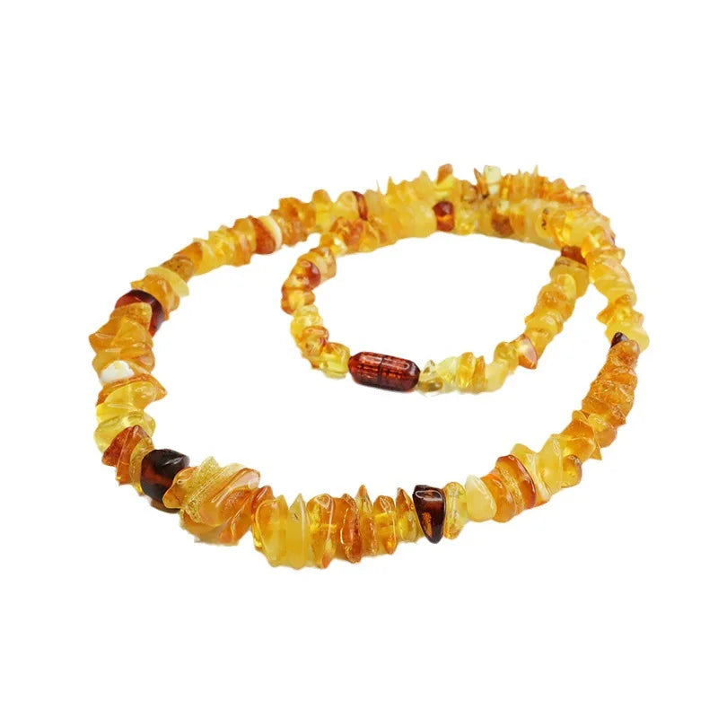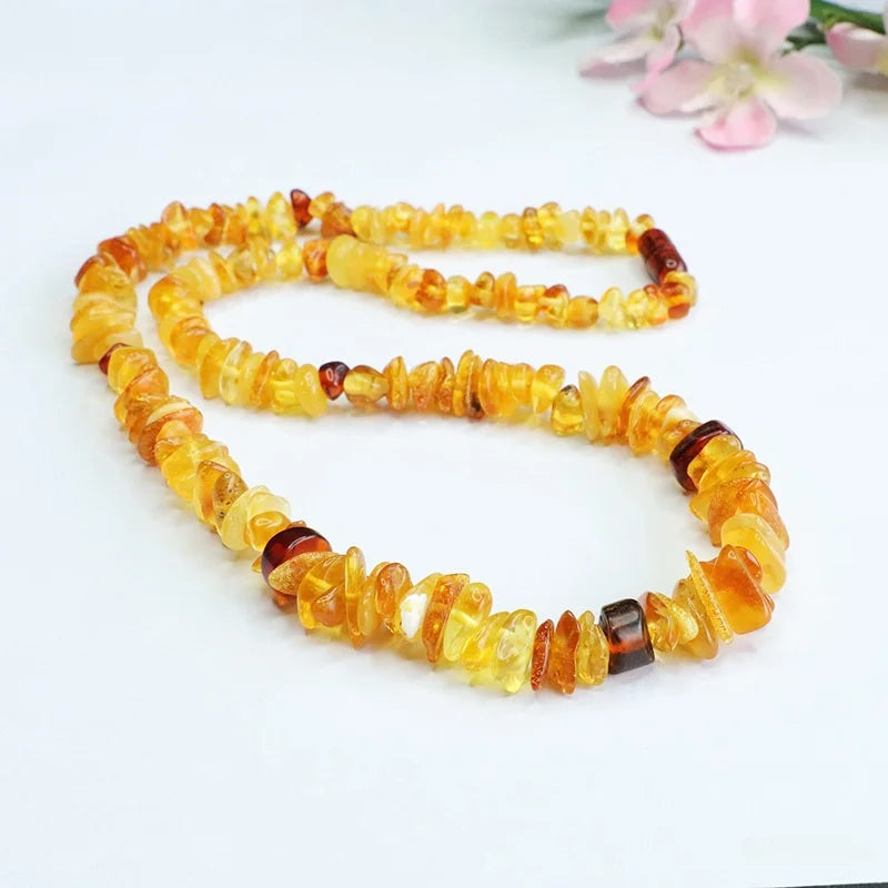 Avec des éléments d’environ 7 à 15 mm, le collier ambre pour femme offre un équilibre parfait entre finesse et visibilité. Il peut se porter seul pour un look élégant, ou associé à d’autres colliers pour un effet superposé plus moderne.