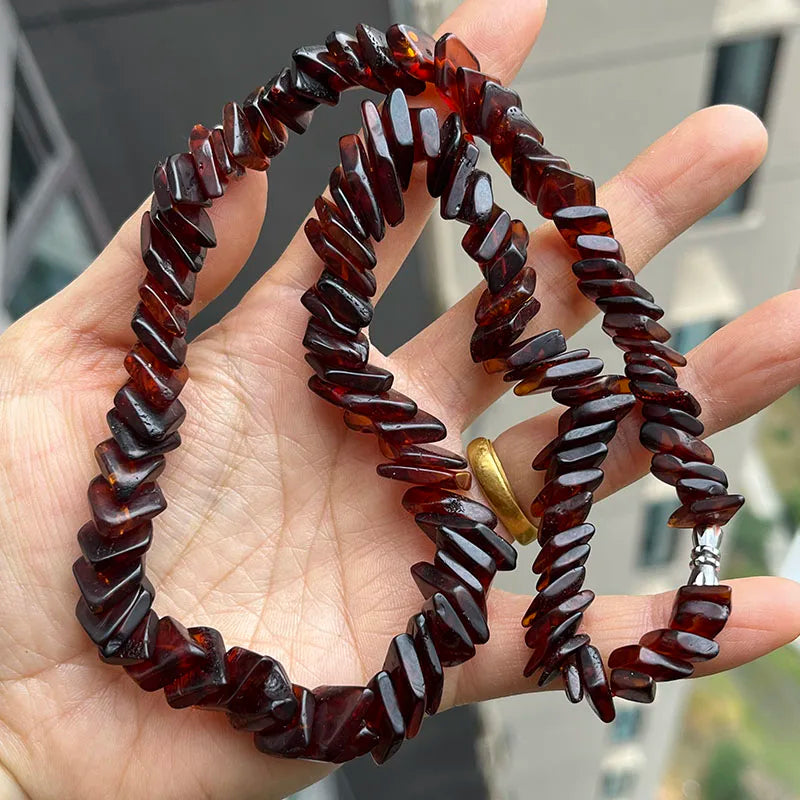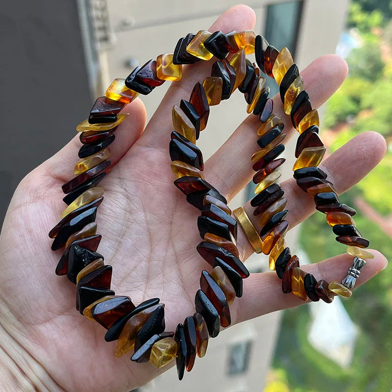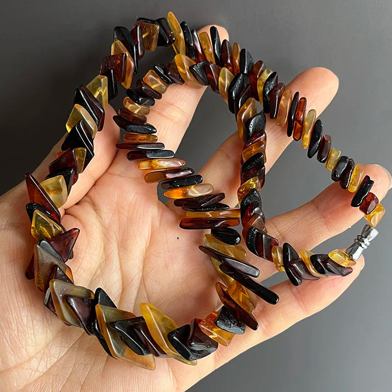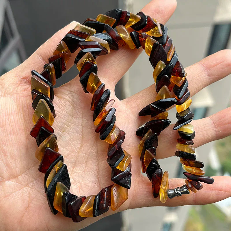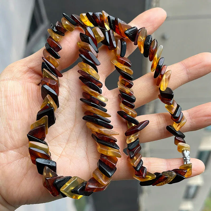 - Matière principale : perles d’ambre baltique