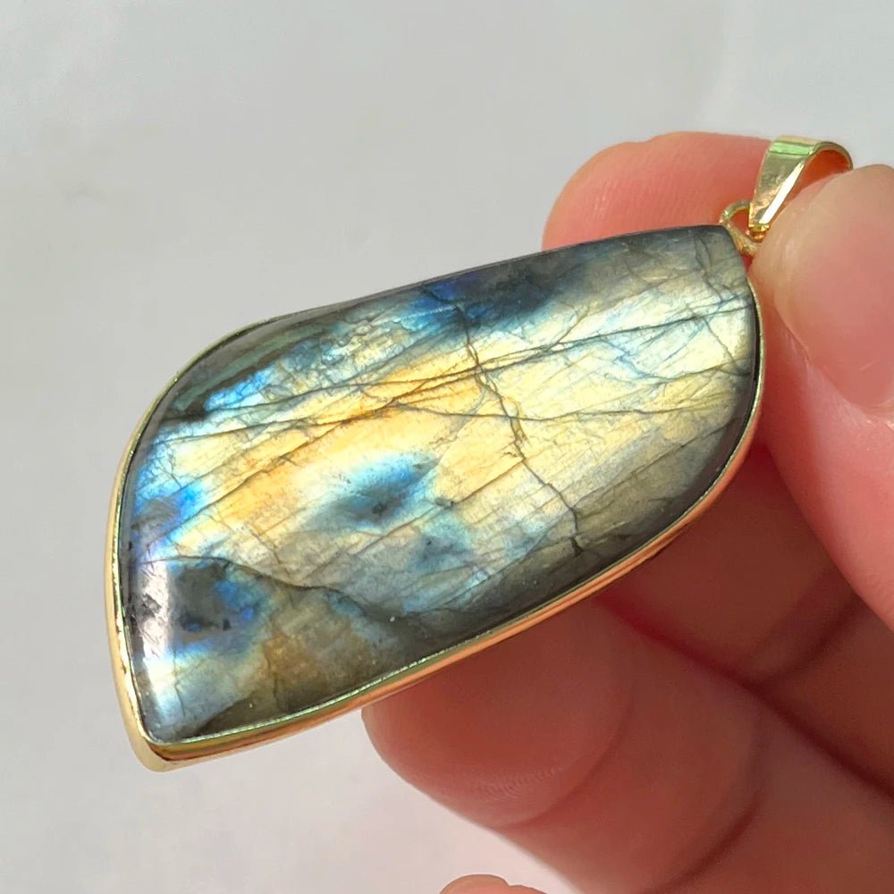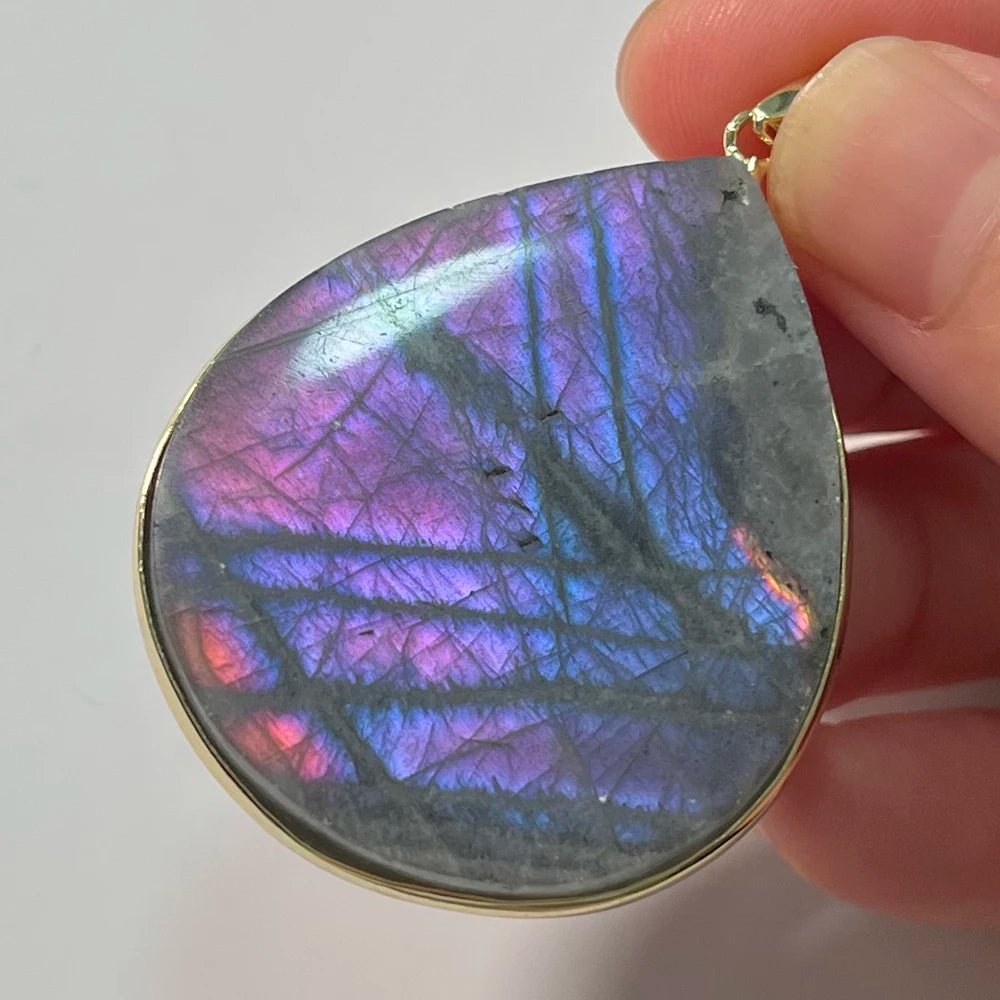 Laissez-vous séduire par le labradorite pendentif, un bijou à la beauté envoûtante.